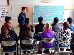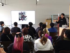 (株)ラコームでは、施設内の見学や、廃材を使った事業の紹介の他、ミシン体験やシルクスクリーン体験などのワークショップが行われました。ワークショップではリラックスした表情の学生達でした。